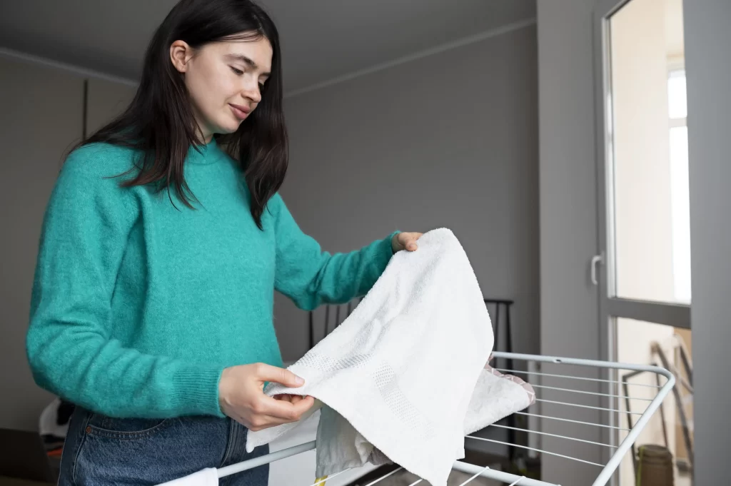 Air drying reduces static and wrinkles and eliminates the release of microfibres through dryer vents. This method is easy to implement with indoor drying racks, making it a practical and eco-friendly alternative to machine drying.