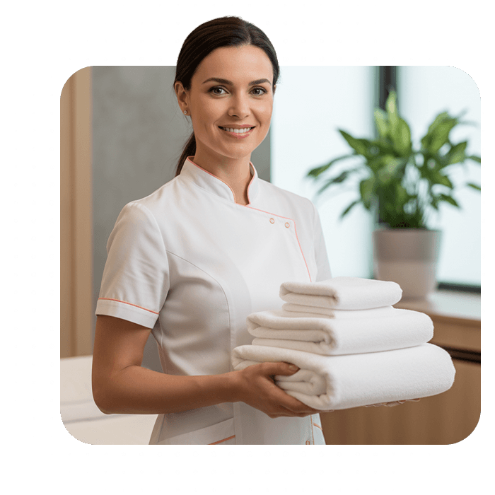 Meeting salon and spa standards shouldn’t be complicated. Our laundry service streamlines the process. We care for your stock or provide new, contract-based linens laundered to perfection. Always fresh, always consistent, never mismatched, so your clients experience comfort, cleanliness, and quality every time.